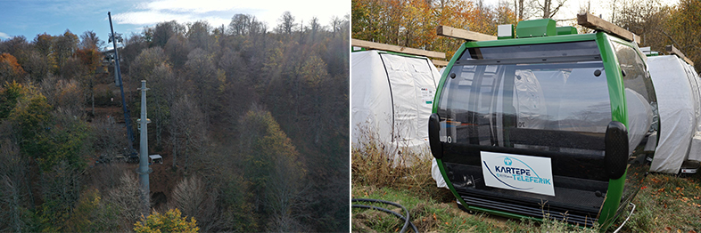 Kartepe Teleferik projesinde 16 adet direğin dikilmesi tamamlandı, yolcu kabinleri de geldi, şimdi sırada kabinleri taşıyacak halatların montajı var