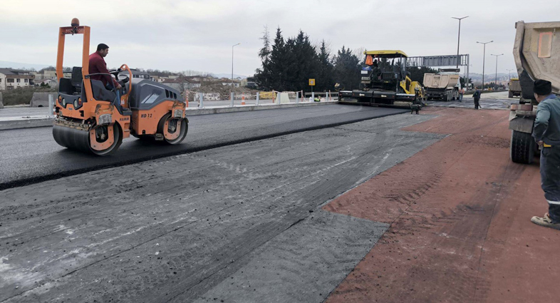 Köseköy Koridoru Alikahya Stadyum bağlantı yolu çalışmaları kapsamında TEM Otoyolu İstanbul istikametinde asfalt imalatları yapıldı