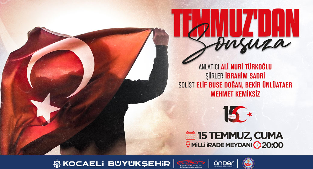 Kocaeli Büyükşehir Belediyesi, 15 Temmuz hain darbe girişiminin 6. yıldönümünde, geçen yıllarda olduğu gibi yine son derece anlamlı bir anma etkinliği düzenleyecek. 15 Temmuz Demokrasi ve Milli Birlik Günü kapsamında gerçekleştirilecek etkinlikler içinde “Temmuzdan Sonsuza” sloganı ile özel bir sahne gösterisi düzenlenecek. Vatandaşların her yıl olduğu gibi bu yıl da söz konusu etkinliğe yoğun ilgi göstermeleri bekleniyor.