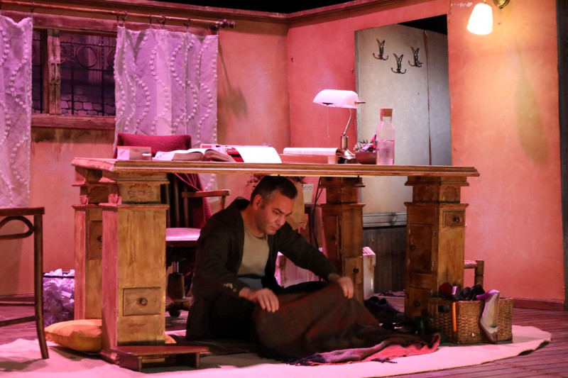 Absürt komedi türündeki oyunda, Fransa’ya sığınmacı olarak gelen Dragomir’in, geçimini çeviriler yaparak sağlayan Florence’ın evinde çalışma masasının altını kiralamasıyla gelişen olaylar konu ediliyor. Bu tuhaf birliktelikle birlikte eve yolu düşen herkesin hayatı beklenmedik şekilde değişiyor. Tek perdelik ve 120 dakika süren oyunun yaş sınırı ise +13.