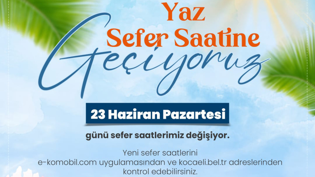 Kocaeli Büyükşehir Belediyesi, yaz mevsiminin başlaması ve 2025-2026 eğitim öğretim yılının sona ermesiyle birlikte toplu taşıma seferlerinde düzenleme yaptı. Yeni sefer saatlerine dair tüm detaylar, vatandaşların hizmetine sunulurken, değişiklikler hakkında bilgi almak isteyenler, www.e-komobil.com mobil uygulama ve www.kocaeli.bel.tr adresinden güncel sefer saatlerine ulaşabilecek.
