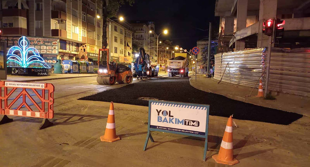 Kocaeli Büyükşehir Belediyesi, gece geç saatlerde araç ve yaya trafiğinin olmamasını fırsat bilerek üstyapı çalışmalarına hız veriyor. İzmit Mehmet Ali Paşa Mahallesi Bağdat ve Zincirlikuyu Caddelerinde bozulma meydana gelen kısımlar da, bayram öncesinde gece geç saatlerde hızlıca onarıldı.