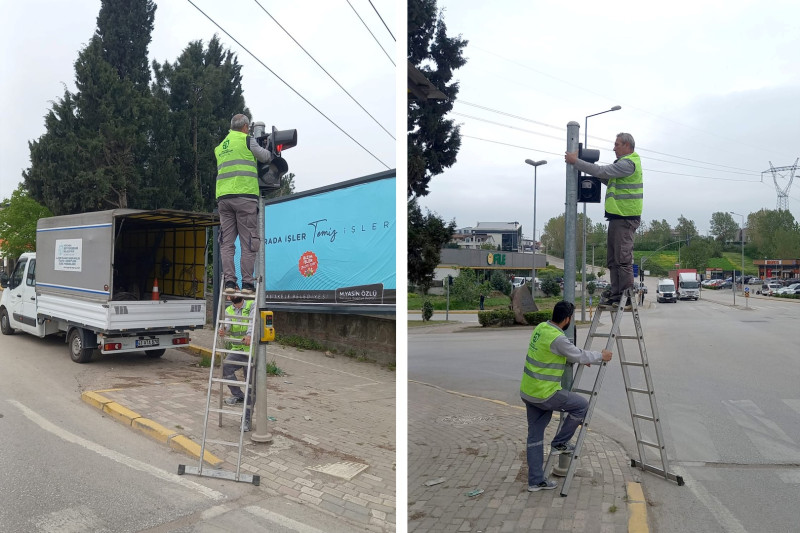 Kocaeli Büyükşehir Belediyesi, sorumluluk alanlarında mal ve can güvenliği için önlemleri alıyor. Bu kapsamda trafik ışıklarında temizlik ve onarım gerektiren noktaların kontrolleri de ekipler tarafından sağlanıyor.