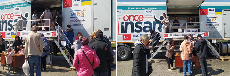 Rusya-Ukrayna savaşı nedeniyle Ukrayna’ya gönderilen mobil yemek tırı, 13 aylık görev süresinin ardından Kocaeli’ye dönüş yaptı. Lviv kentinde savaştan etkilenen Ukraynalılara hizmet veren yemek tırı, acil insani ihtiyaçların karşılanması amacıyla Kocaeli Büyükşehir Belediye Başkanı Tahir Büyükakın tarafından gönderilmişti. 10 Mart 2022 tarihinde Kocaeli’den uğurlanan yemek tırı, AFAD koordinatörlüğünde savaş mağdurlarına hizmet verdi.