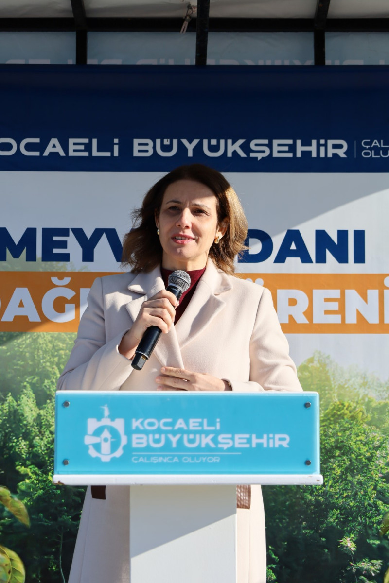 Kocaeli Büyükşehir Belediyesi Balkan Vekili Berna Abiş, “Kocaeli Büyükşehir Belediyesi olarak bugüne kadar pek çok farklı dalda desteklemeler gerçekleştirdik. Aslında bunların en yakın şahitleri, tanıkları da sizlersiniz. Biliyorsunuz ceviz, badem, kivi, yaban mersini, ahududu ve pek çok farklı dalda destekleme yaptık. Bugün de Trabzon hurması desteği yapacağız. Hem pazar talebi giderek artan hem de ekonomik değeri yüksek olan bir ürünü desteklemeyi planlıyoruz. Yüzde 50 hibeli vereceğimiz desteklerimizi 3 bin 600 adet Trabzon hurması oluşturacak. Bunu alan olarak ifade etmek gerekirse 103 dekar yapıyor. Yani 13-14 tane futbol sahası büyüklüğündeki bir alan bugün fidanlarla buluşacak” dedi.