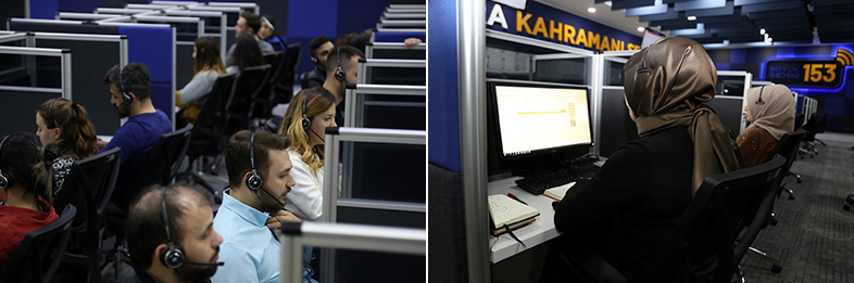 Kocaeli Büyükşehir Belediyesi’nin çağdaş belediyecilik anlayışıyla Kocaeli’nde yaşayan vatandaşlara en kısa sürede, en iyi hizmeti sunabilmek ve vatandaş ile belediye arasındaki bürokrasiyi ortadan kaldırarak, iletişimi güçlendirmek amacıyla kurduğu 153 Çağrı Merkezi, 7/24 ve 3 vardiyalı sistem ile çalışıyor. Gelen çağrılara samimiyetle ve kendi aileleriyle konuşuyormuşçasına bilgi veren çağrı merkezi personeli de vatandaşların memnuniyetini kazanıyor. 153 Çağrı Merkezi, ayrıca ilçe belediyeleri hakkında talepte bulunan vatandaşlarla da ilgileniyor.
