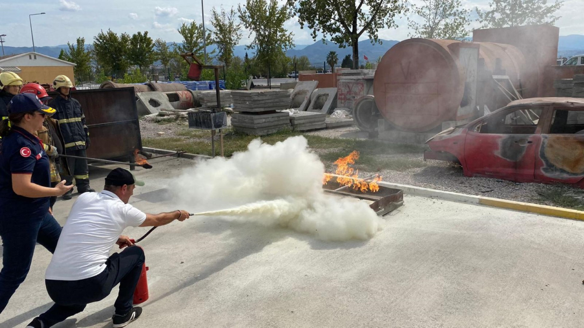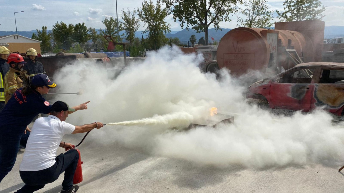 Büyükşehir İtfaiyesi gelen talep üzerine Yahya Kaptan yönetimi ve site sakinlerine yangına müdahale eğitimi verdi
