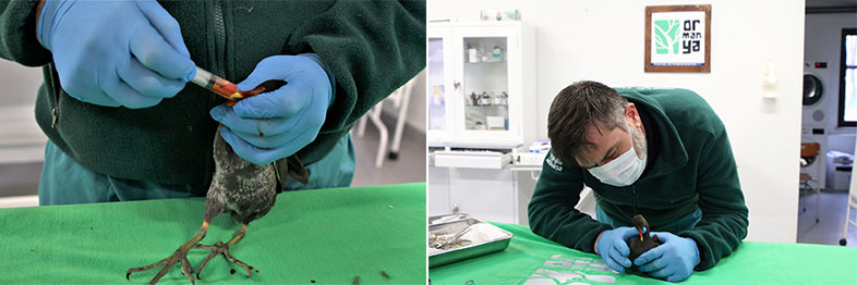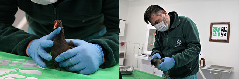 Ormanya Yaban Hayatı Kurtarma ve Rehabilitasyon Merkezine tedavi için getirilen su tavuğu, veteriner hekimlere emanet edildi. Kontrol edilen su tavuğunun 190 gr olduğu tespit edildi. Az beslenme sebebi ile güçten düştüğü belirlenen su tavuğuna uygun yem rasyonu hazırlandı.