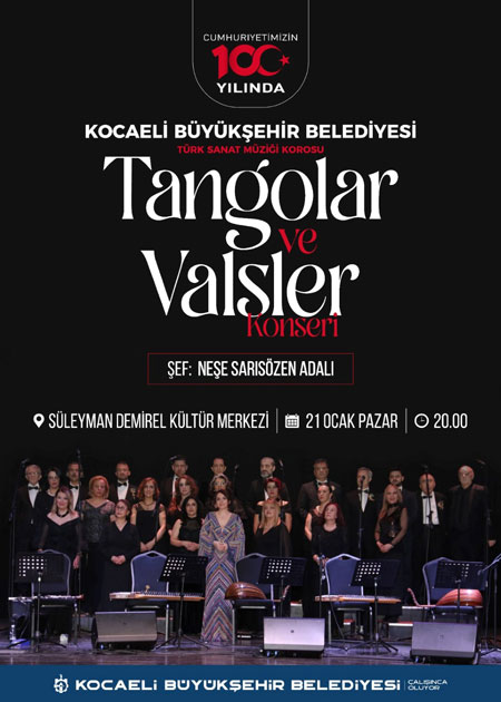 Kocaeli Büyükşehir Belediye Konservatuvarına bağlı olarak faaliyetlerini sürdüren Kadınlar, Musiki Derneği ve Türk Sanat Müziği Koroları yeni yılın ilk konserlerine imza atmaya hazırlanıyor. Kadınlar Korosu ve Musiki Derneği Türk Sanat Müziği’nin duayen bestekarlarının eserlerinden oluşan muhteşem bir repertuarla sahne alacak. Türk Sanat Müziği Korosu ise seslendireceği vals ve tangolarla unutulmaz bir sanat gecesi yaşatacak.