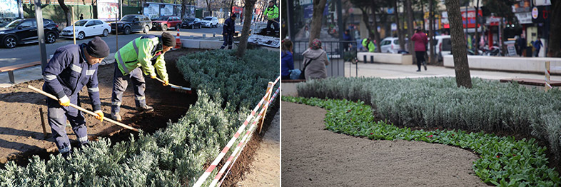 Büyükşehir ekipleri, Yeni Yürüyüş Yolunu mevsimlik çiçeklerle süslüyor. Lavantaların açacağı yaz aylarında Yürüyüş Yolu mis gibi kokacak