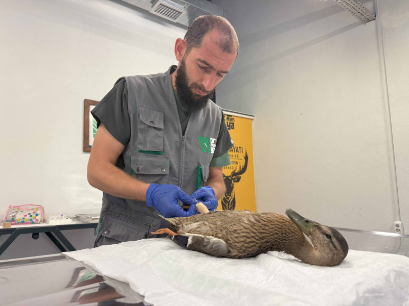 Yaralı ve yardıma muhtaç yaban hayvanları için güvenli bir sığınak olan Ormanya Yaşam Merkezi’ne teslim edilen ördeğe veteriner hekimler tarafından ilk muayenesi yapıldı. Kontrollerde, ördeğin beslenme eksikliği ve düşük sıcaklık nedeniyle ileri derecede dehidrasyon yaşadığı tespit edildi. Herhangi bir kırık ya da doku zedelenmesine rastlanmayan ördeğe sıvı ve besin takviyesi sağlandı.