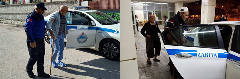 Büyükşehir Zabıta ekipleri gece gündüz demeden il genelindeki birçok noktada görev yapıyor. Ekipler hastane, otogar ve diğer birçok yerde düzenli olarak devriye görevinde bulunarak ihtiyaç sahibi vatandaşlara yardım ediyor. Bu kapsamda hastaneye gidecek olan veya hastanedeki tedavi sonrası aracı bulunmayan, yaşlı hastalar zabıta araçlarıyla evlerine kadar bırakılıyor. Ekipler gerçekleştirdikleri devre görevlerinde karşılaştıkları kimsesiz vatandaşları Büyükşehir Belediyesi’nin Barınma Evlerine götürerek, hizmet almasını da sağlıyor.