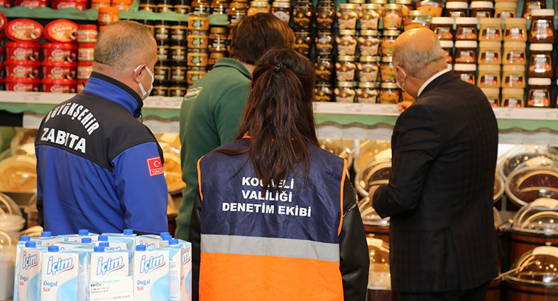 Kocaeli Büyükşehir Belediyesi Zabıta ekipleri, Ticaret İl Müdürlüğü ekipleriyle birlikte marketlerde denetim yaptı