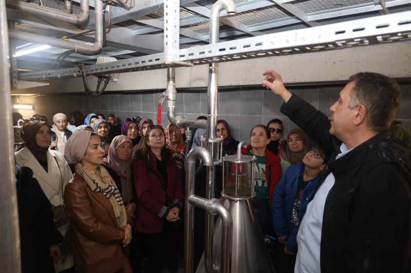 Kocaeli’de tarım ve hayvancılık yapan kadın çiftçiler, TABİP kapsamında hasadı yapılan biberiye, tıbbi nane ve melisadan (oğul otu) oluşan tıbbi ve aromatik bitkilerden uçucu yağların elde edildiği ve bu ürünlerin kozmetik, ilaç ve takviye gıda sektöründe kullanıldığı Distilasyon Merkezi’ndeki işleyiş hakkında SekaPark A.Ş yetkililerinden bilgi aldı.