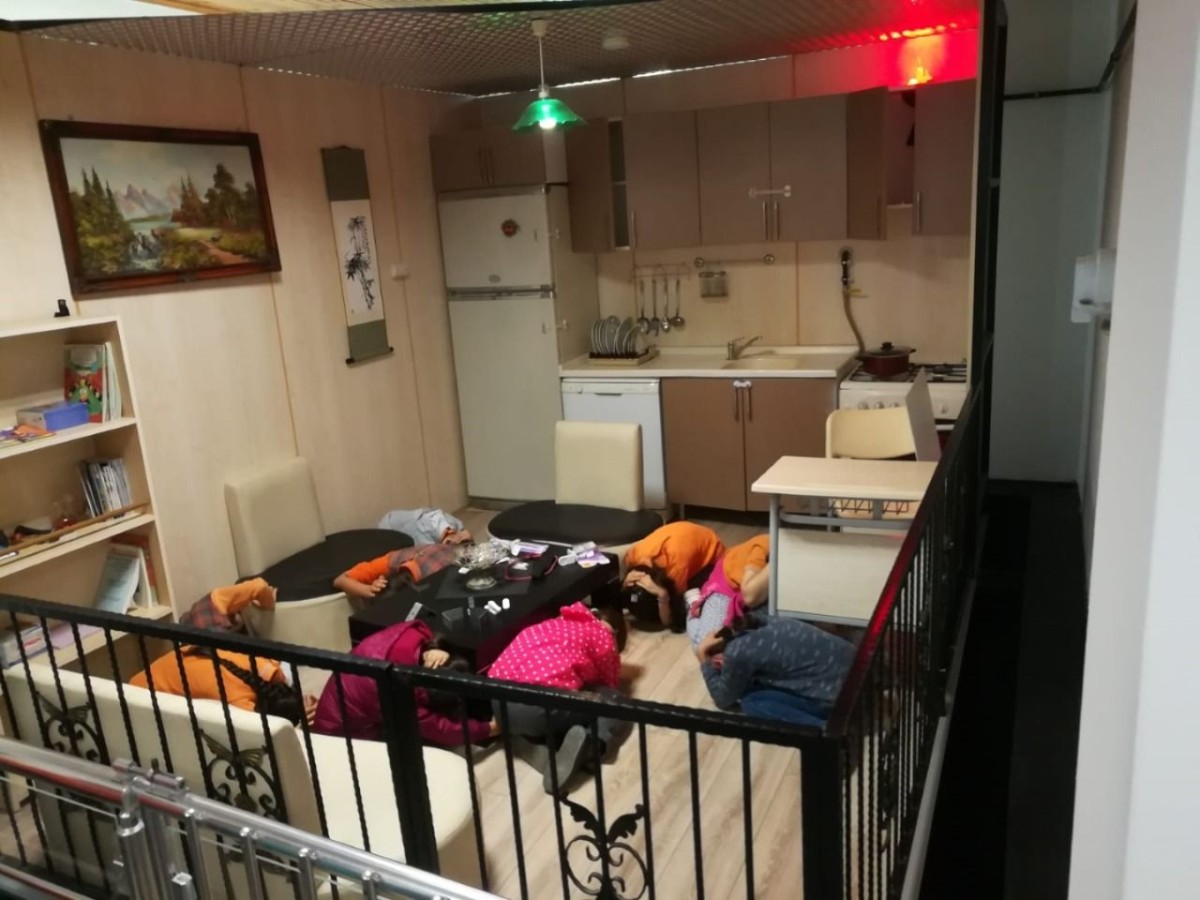 25 dakikalık teorik eğitim sonrasında 12 farklı simülasyon ile deprem öncesi, deprem anında ve deprem sonrasında yapılması gerekenlere yönelik eğitimler gerçekleştirilmektedir.