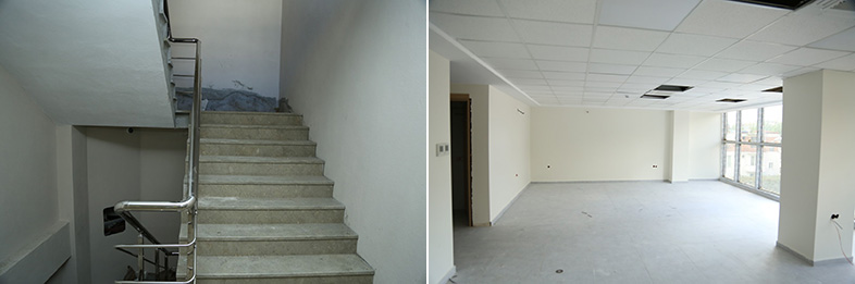 4 katlı Alikahya Gençlik Merkezi’nde alçıpan bölme duvar, alçıpan tavan, taşyünü, mermer basamak ve seramik döşeme gibi önemli imalatları tamamlayan ekipler, yapının giriş katında bulunan spor salonunun zemin pvc montajını ise yakın zamanda tamamlayacak.