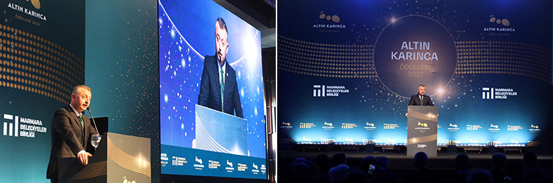 Marmara Belediyeler Birliğinin “2022 Altın Karınca Ödülleri” sahiplerini buldu. Kocaeli Büyükşehir Belediyesi, törende 2 ayrı proje ile ödül alarak, başarılı hizmetlerini taçlandırdı