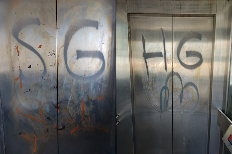 Her gün yüzlerce insanın kullandığı asansörün kapısına tekmelenerek zarar verildi. Ayrıca asansör konsolu ve kapı üzerine sprey boyalarla yazılar yazıldı. Kocaeli Büyükşehir Belediyesi Yapı Kontrol Dairesi Başkanlığınca asansörün bakımı yapılacak.