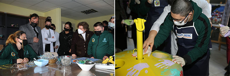 Cemil Meriç Engelsiz Yaşam Merkezi’ndeki öğrenciler, atıkların geri dönüşümüne dikkat çekmek için sanatsal bir çalışma gerçekleştirdi