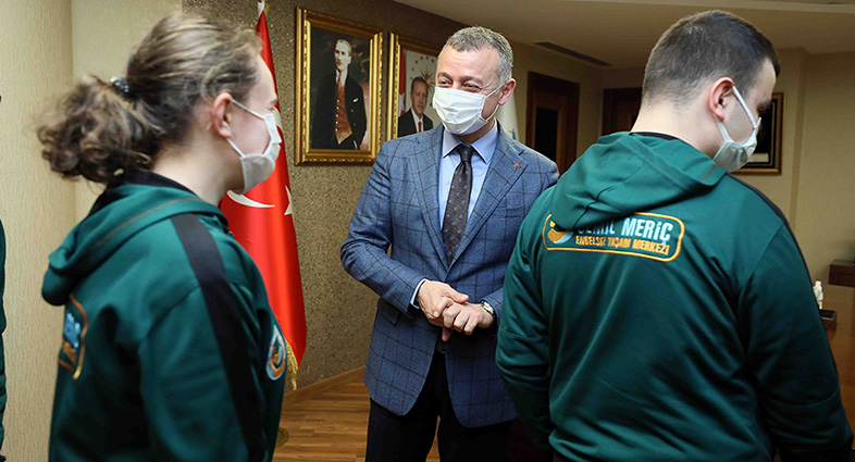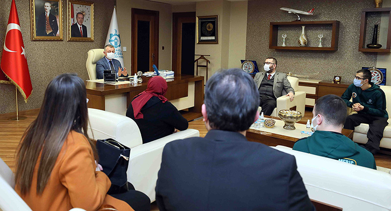 Başkan Büyükakın, Cemil Meriç Engelsiz Yaşam Merkezi’nde eğitim gören ve Engelli Kamu Personel Seçme Sınavı’na (E-KPSS) hazırlanarak dereceye giren öğrencileri makamında konuk etti
