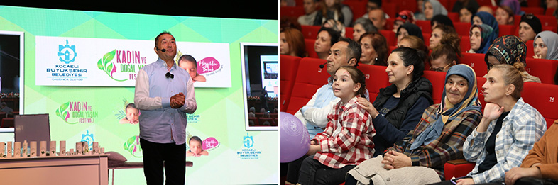 Fuar ve festivallerin kenti Kocaeli, kadına ve doğal yaşama dair pek çok sorunun cevap bulduğu özel bir güne ev sahipliği yaptı. Bu bağlamda Kocaeli Büyükşehir Belediyesi’nin 23 Ekim Pazar günü Kocaeli Kongre Merkezi’nde düzenlediği ‘Kadın ve Doğal Yaşam Festivali’ dopdolu bir programla gerçekleştirildi. Atölye, söyleşi ve etkinliklerin yapıldığı festivalde kadına ve doğal yaşama dair birçok soru, alanındaki uzman isimlerin söyleşileri ile cevap buldu. Kadınlar ayrıca, fuaye alanındaki atölye etkinliklerinde de eğlenceli vakit geçirdi. Festivalin sonunda Kocaeli Büyükşehir Belediye Başkanı Tahir Büyükakın’ın katılımı ile “Hoşgeldin Bebek Projesi’nin” tanıtımı ve devamında Dr. Feridun Kunak’ın sunumu gerçekleşti. Başkan Büyükakın yaptığı konuşmada, kadına ve doğal yaşama dair birçok sorunun cevap bulduğu festivalin tüm ilçelerde yapılacağının müjdesini verdi.