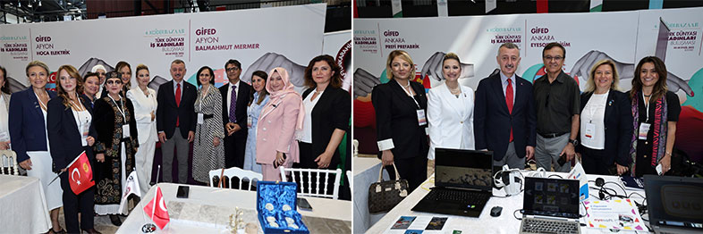 Konuşmasına “Bu şehrin kadınlarına inanıyoruz” diye devam eden Başkan Büyükakın, “Bu şehri daha da zenginleştireceğinize, çok daha başarılı işlerin yapılmasına vesile olacağınıza yürekten inanıyoruz. Yerel yönetimlerin asli vazifesi ön açmaktır, fırsat yaratmaktır. İmkanlara ulaşmayı kolaylaştırmaktır. Yani imkanları fark etmenize, o alanlardaki yeni iş olanaklarına da kavuşmanıza yardımcı oluyoruz. Akademiye, iş dünyasına ve ekonomiye fırsat veren ülkelerin geliştiğini, diğerlerinin geride kaldığını görüyoruz. Bu mantıktan yola çıkarak geçtiğimiz senelerde biz de KOİDER başkanımıza ‘Bunu uluslararası ortama taşıyalım’ demiştik. Ve bugün hayalimiz gerçek oldu ve Türk dünyası açısından bir ilk gerçekleşti. Muhtemelen diğerlerine de örnek olacak ve yenileri de yapılacak. Bu vesileyle de burada iş dünyasını birbiriyle buluşturduk” ifadelerini kullandı. Başkan Büyükakın’ın konuşmasının ardından kürsüye gelen KOİDER Başkanı ve GİFED Uluslararası İlişkiler Komisyonu Başkanı Nihan Çakıcı, çıktıkları bu yolda kendilerine destek veren Büyükşehir Belediye Başkanı Tahir Büyükakın’a teşekkür ederek, plaket takdim etti. Ayrıca Başkan Büyükakın, fuaye alanında kurulan tüm stantları tek tek gezerek iş kadınlarını tebrik etti.