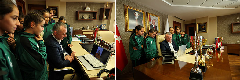 Kocaeli Bayan Futbol Takımının elde ettiği başarılar nedeniyle Teknik Direktör Hasan Alemdar ve tüm teknik heyeti de kutlayan Başkan Büyükakın, “Bizlerin görevi çocuklarımıza ve gençlerimize hayallerini gerçekleştirebilecekleri alanları hazırlamaktır. Bizde bu gayretle çalışmaya devam ediyoruz. İnşallah daha güzel spor tesislerini kazandırmaya devam edeceğiz” ifadelerini de sarf etti. Birliktelik yapılan görüş alışverişinin ardından sona erdi.