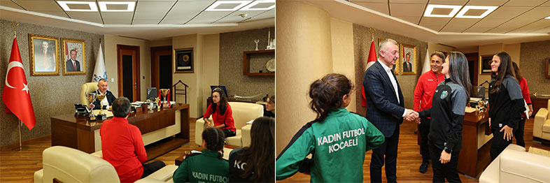 Kocaeli Bayan Futbol takımını konuk eden Başkan Büyükakın, “Görevimiz gençlerimize hayallerini gerçekleştirebilecekleri alanları hazırlamaktır” dedi