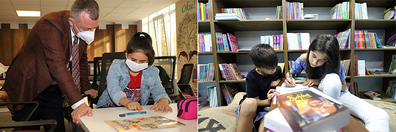 Çocuk Kütüphanelerinde çocuk kitapları, öykü serileri, sözlükler, meal kitapları, kaynak kitaplar ve romanlar bulunuyor. Kütüphaneler hikâye kulübü, bilgi destek programı ve atölye çalışmalarında aktif olarak kullanılmakta. Pandemi sürecinde gerekli tedbirlere uygun şekilde kütüphanelerde kitap alışverişi devam etti. Bilgievleri kütüphanelerinde bulunan 100 bini aşkın kitap, kitapseverler ile buluşmayı bekliyor. 2021 yılı içerisinde 5 bin 319 öğrenci kitap alışverişinde bulundu.