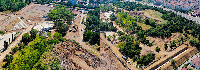 Park ve Bahçeler Daire Başkanlığı ekibi çalışmaları titizlikle yürütüyor. Sağlıklı Yaşam Parkı kapsamındaki yürüyüş yollarının grabetonları atıldı, zemin kaplama imalatlarına başlanması planlandı. Bununla birlikte tenis, basketbol ve futbol sahalarının hatıl betonları dökülüp, iç mıcır dolguları atıldı. Çalışmalarda saha zemin betonları dökülecek, ardından saha çevresindeki çelik imalatları yapılacak. Parkın sınırlarını çevreleyen yürüyüş ve bisiklet yolu imalatı, gül bahçesi ve refleksoloji alanlarının imalatlarına başlanacak. Elektrik alt yapı çalışmaları devam ederken son olarak fitoterapi alanında bulanan bitki tarlalarına tıbbi aromatik bitkiler dikilmesi planlandı. Ekipler vatandaşların huzurlu ve sağlıklı bir yaşam alanına kavuşması çalışmalarına tüm hızıyla devam ediyor.
