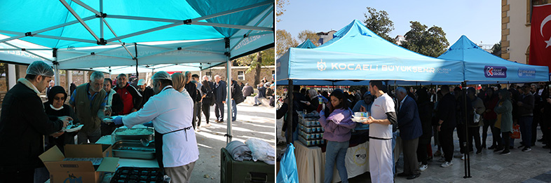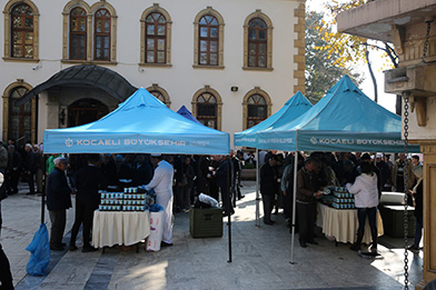 İzmit’in 7 caminde stant kuran Kocaeli Büyükşehir Belediyesi, Atatürk ve silah arkadaşlarının anısına ikramlarda bulundu