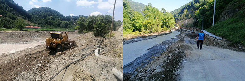 Uğursuyu deresinde yaşanan sel taşkınının getirdiği birikintiyi dozerle temizleyen Fen İşleri Daire Başkanlığı ekipleri, köylere ulaşımın sağlandığı yolun açılması için dere yatağı temizleme ve yol yapım çalışması yapıyor. Büyükşehir Yol Bakım Timi bölgede bir haftadır çalışmalara katılıyor. Düzce’de ekipler, 1 tır, 1 dozer ve 4 personelle yol açma, yol genişletme dere yatağı genişletme çalışmaları yapıyor.