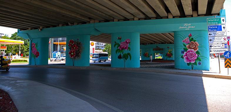 İmar ve Şehircilik Başkanlığı Tarihi Mekanlar ve Kent Estetiği Şube Müdürlüğü tarafından yapılan çalışmayla vatandaşların yoğun olarak kullandığı İzmit Akçakoca Bey Üstgeçidine yapılan rengârenk çiçek resim uygulaması ile bölgeye görsel zenginlik kazandırıldı. Kocaeli genelinde hayata geçirdiği üstyapı çalışmalarıyla vatandaşların ulaşımda yol konforunu arttıran Kocaeli Büyükşehir Belediyesi, Güzel Şehrim Kocaeli Projesi kapsamında uyguladığı resim çalışmalarıyla da şehrin estetiğini güçlendiriyor.