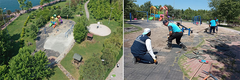 Büyükşehir, Tavşancıl Sahil Parkı’nı revize ediyor. Çalışmalar tamamlandığında parkın zemini ve oyun alanı daha modern hale gelecek