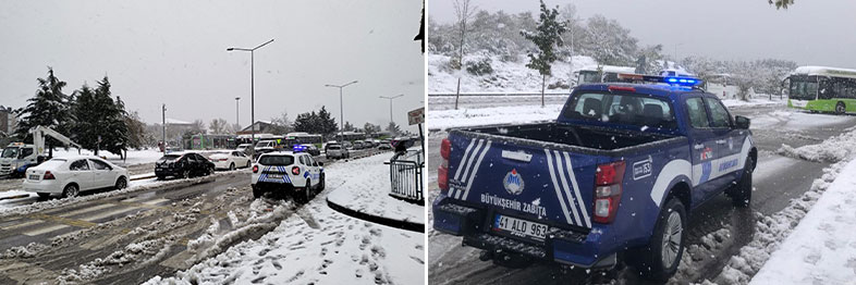 Kocaeli Valiliği’ne bağlı AFAD tarafından Meteorolojiden alınan bilgiye göre hafta sonunda sağanak yağış ve fırtına uyarısı yapılmıştı. AFAD’ın uyarısının ardından Kocaeli Büyükşehir Belediyesi ve İSU Genel Müdürlüğü ekipleri teyakkuza geçmişti. Soğuk ve yağışlı havanın etkisini göstermesiyle birlikte Kartepe ve Umuttepe’ye de ilk kar tanelerinin düşmesiyle Büyükşehir’e bağlı İtfaiye, Fen İşleri, Park ve Bahçeler, Zabıta ve İSU ekipleri, vatandaşların olumsuz etkilenmemesi ve yolların açık tutulması için 7/24 görev başında mücadele ediyor. Yağış öncesinde 12 ilçede yağmursuyu hatları, mazgal ve ızgara temizliklerini yapan Büyükşehir ve İSU ekipleri, motopomp ve kurtarma araçlarıyla da olumsuzluk yaşanan bölgelere müdahale ediyor. Olası bir su baskınında vatandaşların 112 ve 153 çağrı merkezlerine haber vermesi yeterli oluyor.