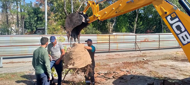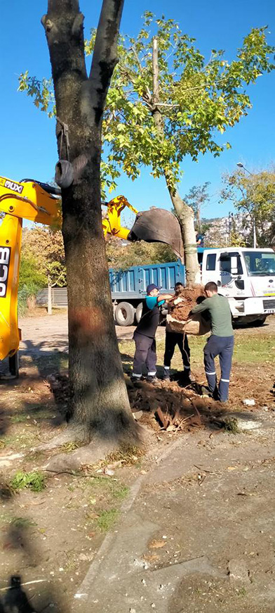 Büyükşehir ekipleri, İzmit Millet Bahçesi kapsamında fuardaki ağaçları hassasiyetle yerinde sökerek, ardından adeta bir çocuk gibi bakımlarını yapıyor