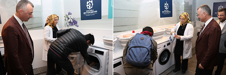 Eğitim ve öğretime büyük önem veren Kocaeli Büyükşehir Belediyesi, Türkiye’ye örnek olan bir hizmetin açılışını daha gerçekleştirdi. Bu bağlamda öğrenci dostu olan Büyükşehir, Kocaeli’de eğitim gören üniversite öğrencilerinin eğitim bütçelerine katkı sağlamak ve derslerine daha fazla zaman ayırmalarına imkân tanımak amacıyla İzmit Şahabettin Bilgisu Caddesi’nde bulunan Çamaşırhaneyi hizmete sundu. İzmit’te gerçekleştirdiği ziyaretler sırasında Çamaşırhaneyi gezme fırsatı bulan Kocaeli Büyükşehir Belediye Başkanı Tahir Büyükakın, burada karşılaştığı öğrenciler ile sohbet etti ve onlara derslerinde başarılar diledi.