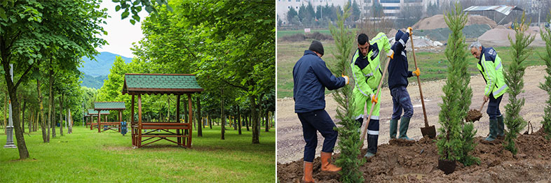Büyükşehir Belediyesi, birçok alanda çevre seferberliğine öncülük ediyor. Kent merkezinden en ücra köye kadar büyük bir çevre dönüşümü başlatan Park ve Bahçeler Dairesi Başkanlığı ekiplerinin yoğun çalışmasıyla Kocaeli genelinde farklı türlerde milyonlarca ağaç dikimi gerçekleştirdi. Son dönemde 18 park düzenlemesi, 15 sahil düzenlemesi, 12 kavşak düzenlemesi, 8 meydan düzenlemesi ve 12 mesire alanı yapan Büyükşehir, kadim medeniyetlere ev sahipliği yapmış şehrimizin tarihini, kültürünü ve doğal güzelliklerini geleceğe taşıyor. İnsanı ve doğayı merkeze alan bir anlayışla hareket eden Büyükşehir, kente 14 bin 996 sosyal donatı elemanı da kazandırdı.