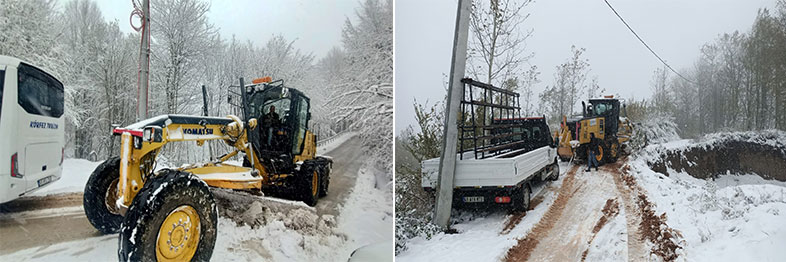 Kartepe Zirve yolu, Eriklitepe tabiat parkı başta olmak üzere ilimizin yüksek kesimlerinde gece yarısından itibaren etkisini göstermeye başlayan kar yağışının hayatı olumsuz etkilememesi için hızlıca mücadeleye başlayan Fen İşleri Daire Başkanlığı Karla Mücadele Ekipleri, yollarda kapanma ve buzlanma olmaması için önlem aldı. Yüksek rakımlı köy yollarında kar küreme ve buzlanmaya karşıda tuzlama çalışmalarıyla herhangi bir olumsuzlukla karşılaşılmadan etkili ve hızlı bir şekilde karla mücadele edildi.