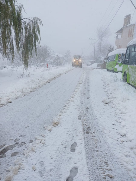 İlimizde yüksek kesimlerde etkisini gösteren kar yağışının hayatı olumsuz yönde etkilememesi için Büyükşehir Karla Mücadele Ekipleri görev başında
