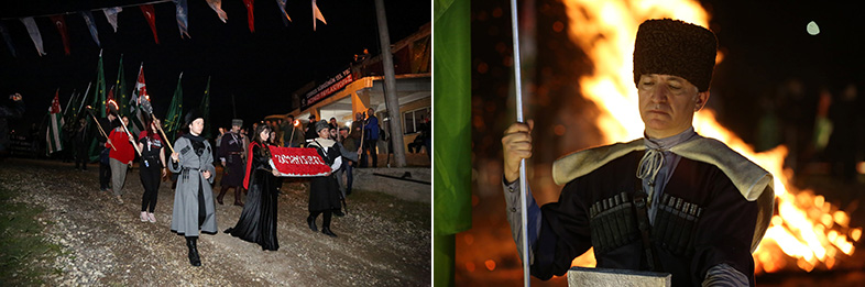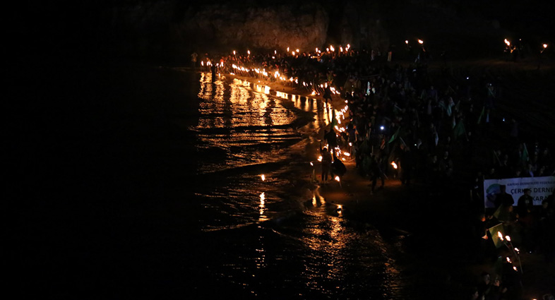 Binlerce Çerkes vatandaş, 155 yıl önce atalarının sığındığı mağara ve anıt mezarlara meşaleli yürüyüş gerçekleştirdi. Denize çelenk ve kırmızı karanfiller atıldı. Meşaleler yakılıp sahile bırakıldıktan sonra sürgün ateşi yakılarak çevresinde ‘Mezar Taşı Nöbeti' tutuldu. Atalarının 155 yıl önce sığındığı mağaraya da karanfiller bırakıldı.