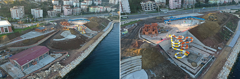 Halıdere tarafında bir adet çocuk oyun grubu ve fitness alanını tamamlayarak kullanıma açan ekipler, Değirmendere mevkiinde bulunan mescit ve tuvalet binalarını da tamamlama aşamasına geldi. Aquaparkın düşme havuzu ile kaydırakların montajı yapılırken, su oyun grubunda aletlerin montajı gerçekleştirildi. Aquapark alanının zemin kaplama çalışmalarına başlayan Büyükşehir ekipleri, içerisinde idari bölümler, duş ve soyunma odalarının bulunduğu binanın kaba inşaatını tamamlamak üzere. Ayrıca proje genelindeki yeşil alanlarda regülaj çalışmaları yapılırken, sulama ve elektrik altyapı imalatlarına devam ediliyor.