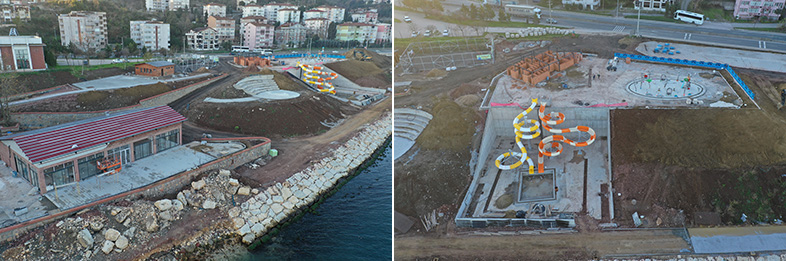 Sahil bandına inşa ettiği parklar ile vatandaşların hayatına sosyal ve kültürel anlamda zenginlik katan Kocaeli Büyükşehir Belediyesi, bu alandaki çalışmalarına hız kesmeden devam ediyor. Bu doğrultuda Gölcük Değirmendere-Halıdere arasında inşa edilen parkta yer alan çift kaydıraklı aquaparkın imalatları da önemli ölçüde ilerledi.