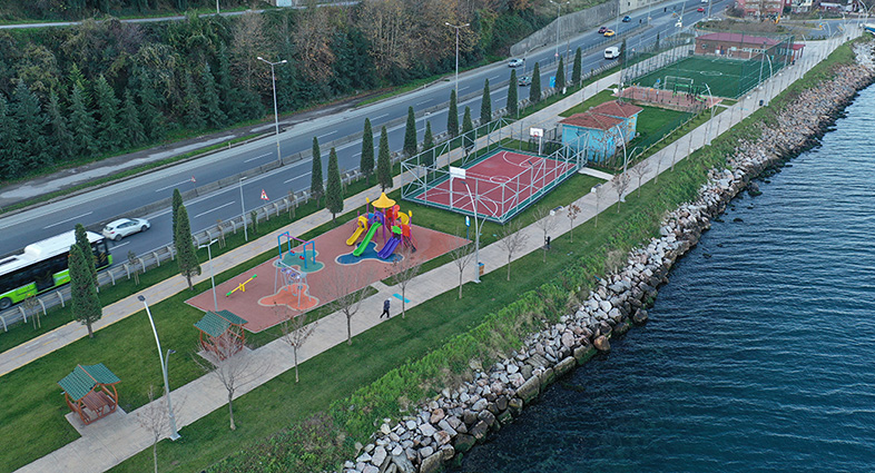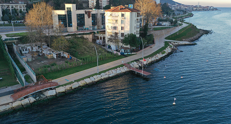 Büyükşehir tarafından Gölcük Değirmendere-Halıdere arasındaki inşa edilen sahil parkındaki çalışmalar yoğun şekilde sürüyor