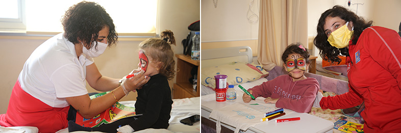 Kocaeli Büyükşehir Belediyesi’nin “Çık Dışarıya Oynayalım” adlı çocuk şenliği bu kez Derince Eğitim Araştırma Hastanesi Alikahya Yerleşkesi Çocuk Hastanesi’nde yatarak tedavi gören çocuklara moral ve motivasyon verdi. Resim, boyama, çanta boyama ve yüz boyama gibi faaliyetlerden oluşan moral etkinliği çocuklar ve aileler tarafından memnuniyetle karşılandı.