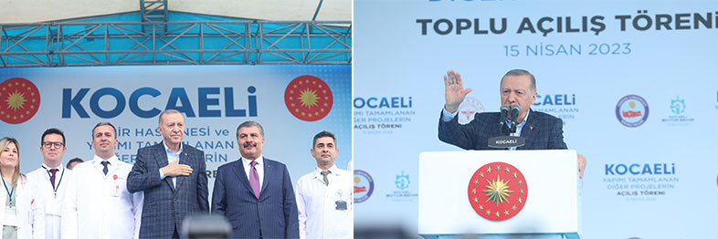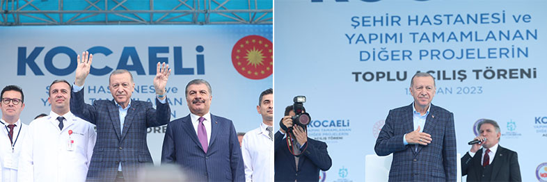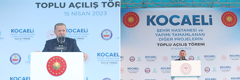 Cumhurbaşkanı Recep Tayyip Erdoğan, Kocaeli Şehir Hastanesi ve 11. Toplu Açılış Bayramı için Kocaeli’ne geldi. Cumhurbaşkanı Erdoğan, Türkiye’nin hizmete giren 21. şehir hastanesi olan Kocaeli Şehir Hastanesi’nin yanı sıra Kocaeli Büyükşehir Belediyesi’nin 1.703.472.163 TL tutarındaki 40 projesinin de aralarında yer aldığı Bakanlıklar, Kocaeli Valiliği ve ilçe belediyelerinin toplam 2.318.882.022 TL değerindeki 84 projesinin toplu açılışını gerçekleştirdi. Cumhurbaşkanı Erdoğan, alanı dolduran binlerce Kocaeliliye, ‘’Adı Koca, gönlü yüce, tabiatın ve tarihin şehri Kocaeli, şu muhteşem katılımı bak’’ sözleriyle seslendi.