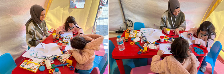Depremden en çok etkilenen, en çok korkan ve kaygıya kapılan kuşkusuz ki çocuklar. Bir gecede yaşadıkları mutlu yuvalarından olan çocuklar, hem kayıpların acısını yüreklerinde hissediyor, hem de bu yeni duruma alışmaya çalışıyor. Bu noktada çocukların yaşanan bu felaketi psikolojik olarak en hafif şekilde atlatmaları için oyunun iyileştirici gücü büyük önem taşıyor. Sağlık ve Sosyal Hizmetler Dairesi Başkanlığı’na bağlı uzman psikologlar da deprem bölgesinde hem çocukların hem de yetişkinlerin ruhundaki yaraları sarmaya çalışıyor.