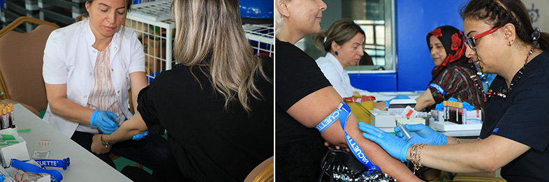 Büyükşehir tarafından Anne Şehir Sağlıklı Yaşam Programı içinde yer alan katılımcılara sağlık taraması gerçekleştiriliyor