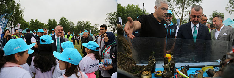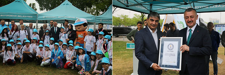 Programın sonunda toplanan atıklar etkinlik alanında sergilendi. Ayrıca Saraybahçe İlkokulu’nun iklim değişikliği sıfır atık ve geri dönüşüme dikkat çekmek için yaptığı 1380 pili arka arkaya dizerek 70 metre uzunluğundaki rekor denemesi Guinness tarafından tescillendi. Pil dizme dünya rekorunun sahibi olan Saraybahçe İlkokulu Müdürü Yusuf Kılıç’a belgelerini Başkan Büyükakın takdim etti.