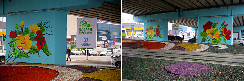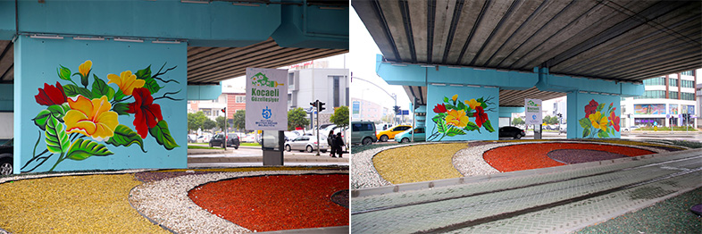 Kentsel Dönüşüm Daire Başkanlığı, Tarihi Mekanlar ve Kent Estetiği Şube Müdürlüğü tarafından Kocaeli genelinde uygulanan meydan, bulvar, köprü ve caddelerin duvar zeminlerine resim uygulama çalışmaları vatandaşlardan ilgi görüyor. Bu kapsamda Kandıra Yolu üzerinde bulunan İzmit Yahya Kaptan Köprülü Kavşağının ayaklarına çiçek temalı resim uygulaması yapılıyor. Bulunduğu bölgeye görsel anlamda zenginlik katacak resim uygulaması, şimdiden vatandaşlardan ilgi görüyor.